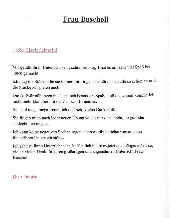 Eine Zuschrift von Denisa D. | Klavierschülerin des Stiftungsprojekts “Musik für Schüler” in Augsburg | Mai 2022