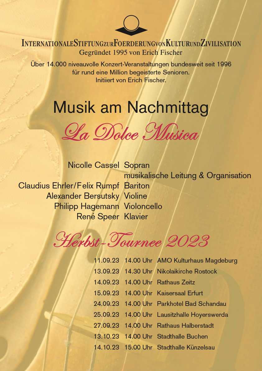 Herbst-Tournee 2023 vom 11.09. bis 14.10.2023 | Musik am Nachmittag in festlichen Sälen | “La dolce musica”