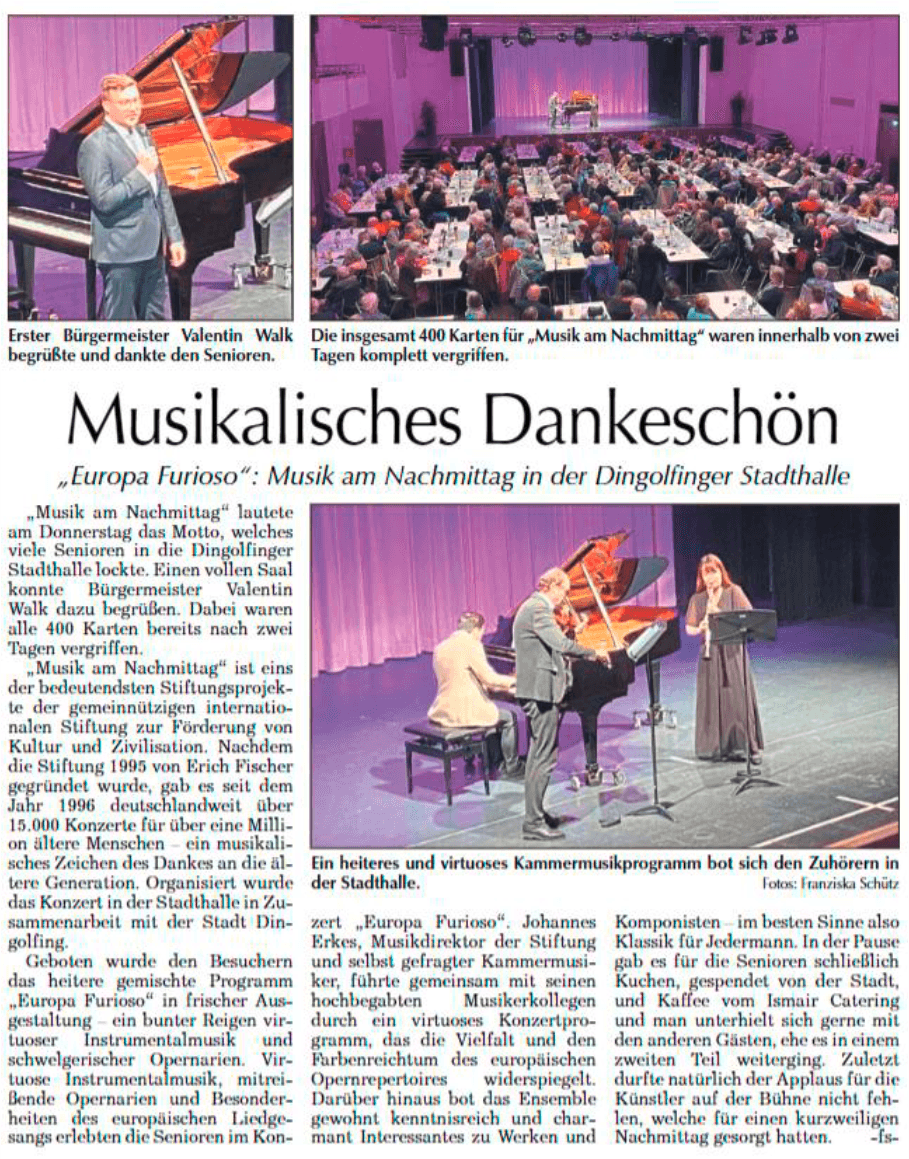 Wir geben unser Bestes, um live Kultur aufrecht zu erhalten; unser Mitarbeiter Thomas Schütz engagiert sich in idealistischer und unermüdlicher Weise gegenüber sämtlichen "Corona-Behörden", um Hürden zu überwinden, damit "Musik am Nachmittag" stattfinden kann.