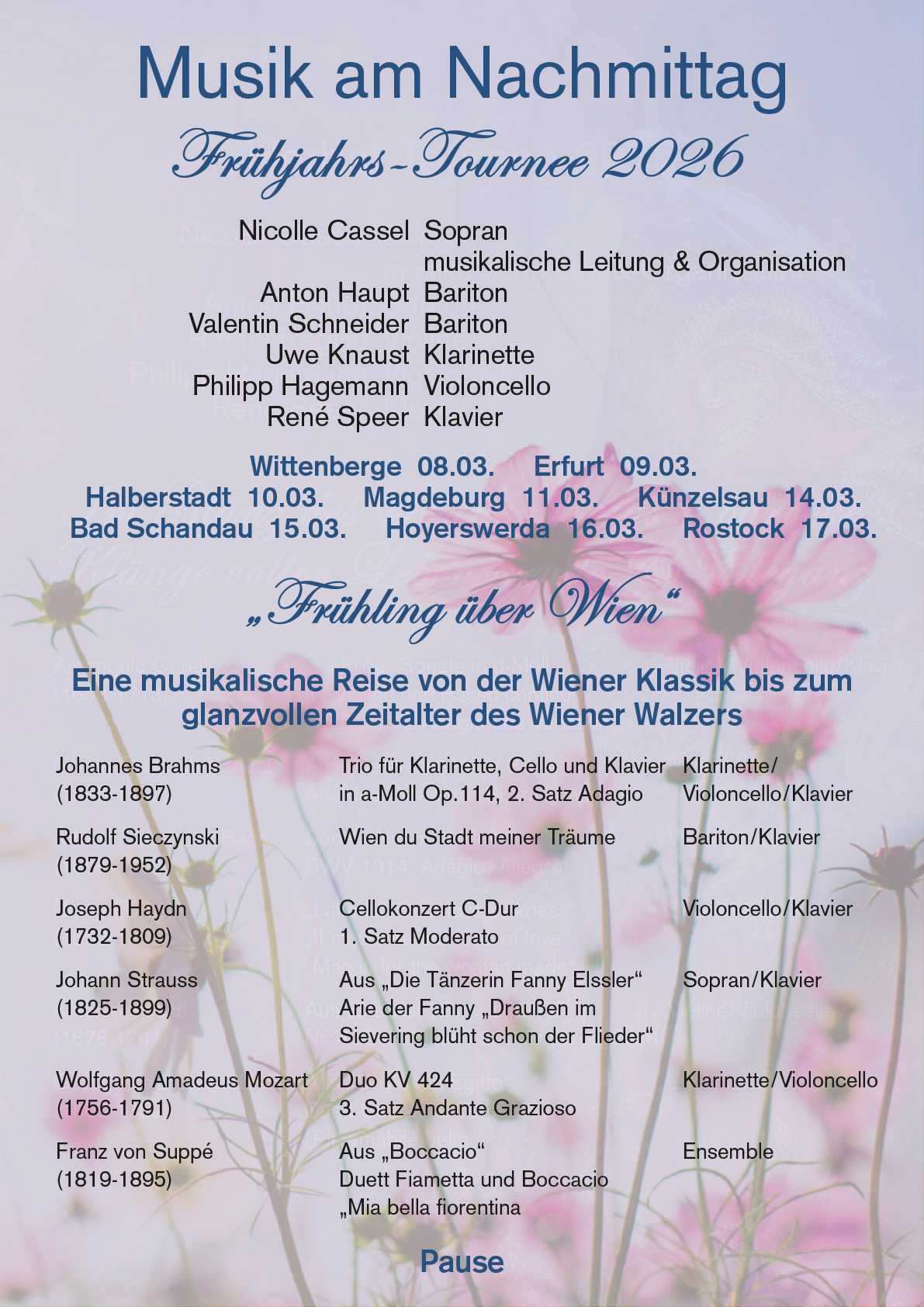 Frühjahrs-Tournee 2024 vom 10.03 bis 23.03 | Musik am Nachmittag in festlichen Sälen | “Es tönen die Lieder”