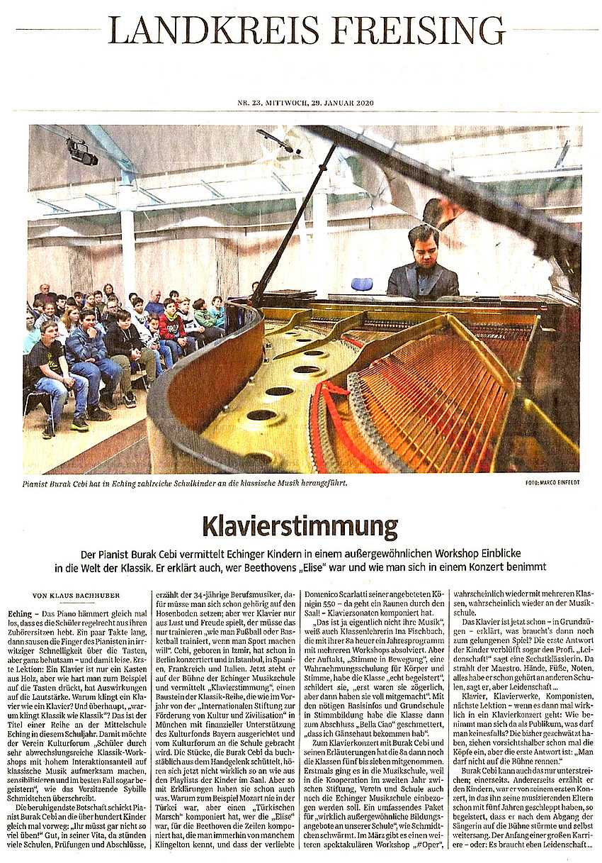 “Klavierstimmung” Einblicke in die Welt der Klassik für Schüler und Schülerinnen an der Mittelschule Eching